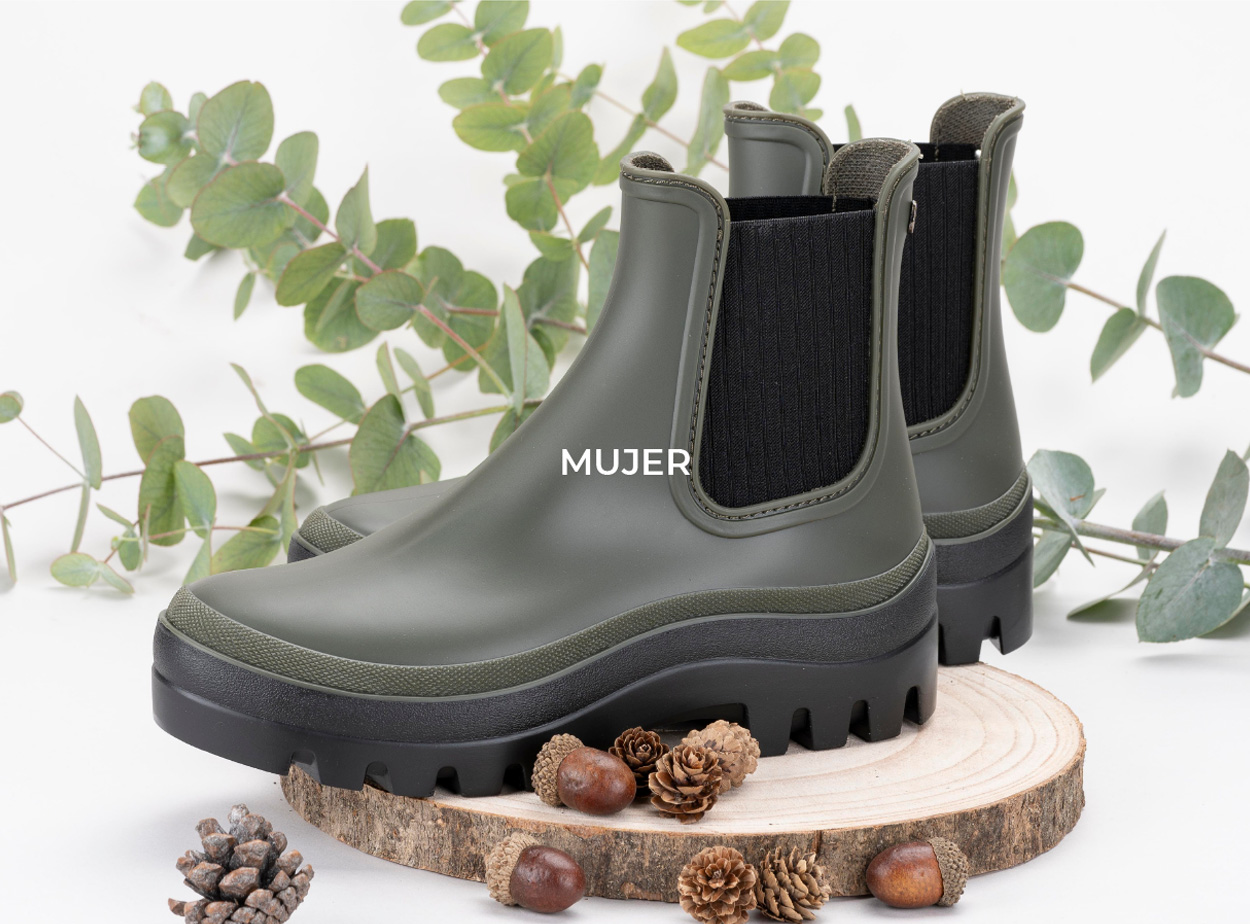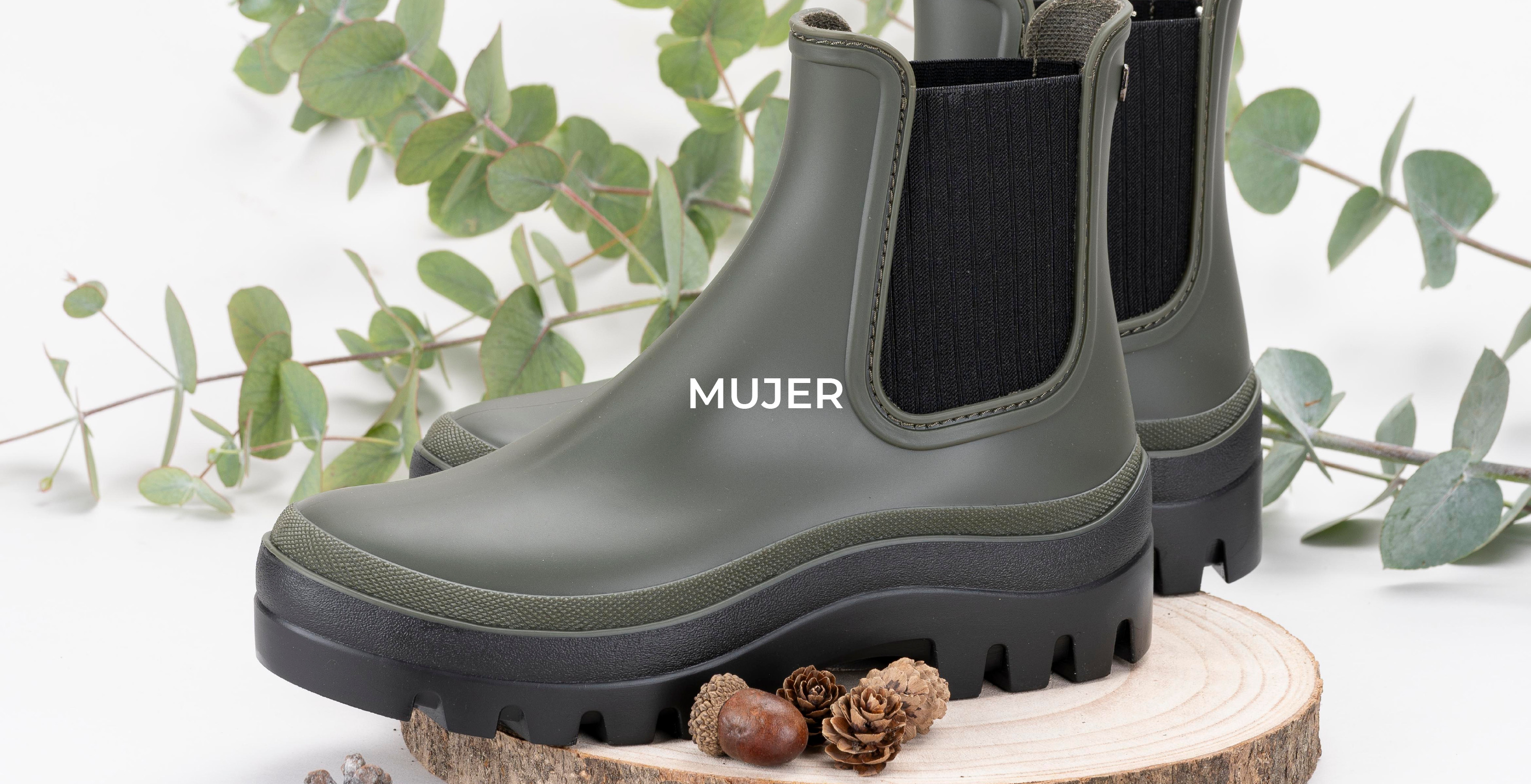 Botín de agua estilo nórdico, con acabado mate, textil en los laterales, plantilla confort extraí