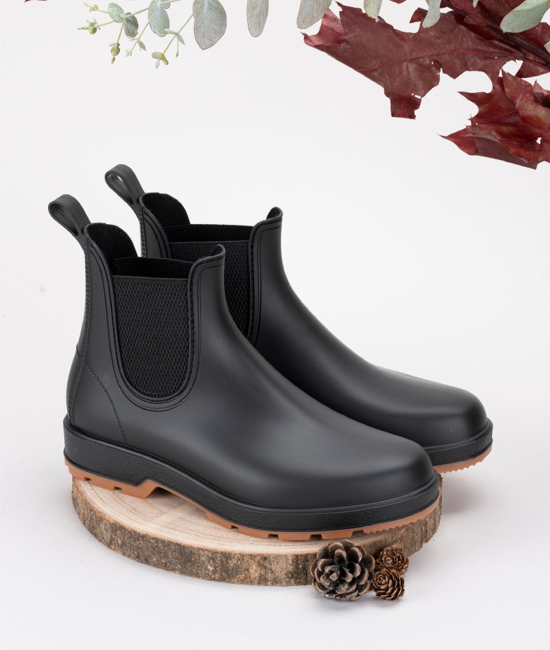 Botín de agua monocolor estilo track, con acabado mate, textil en los laterales, plantilla confort