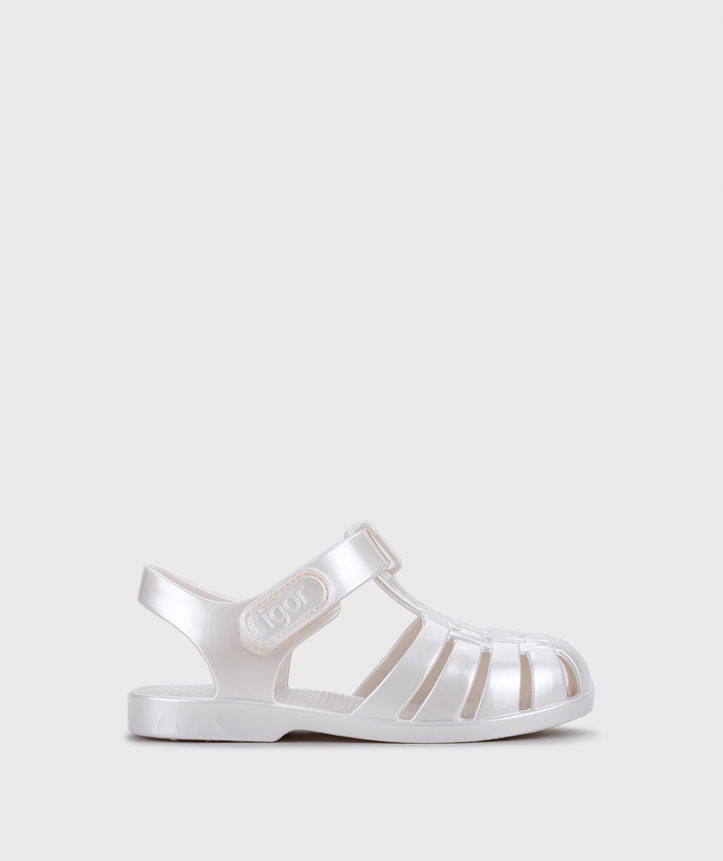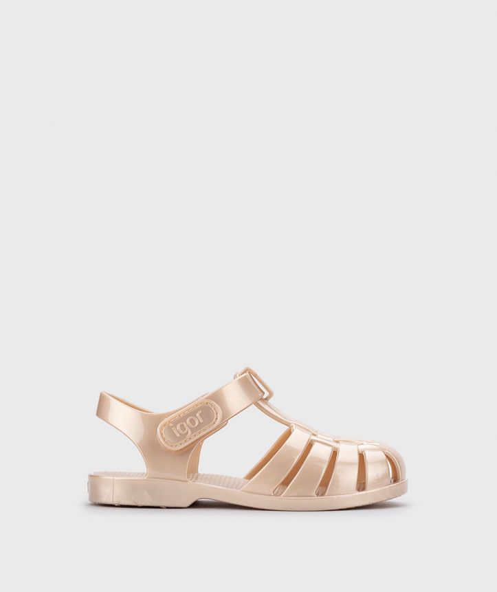 Cangrejera clásica monocolor con acabado efecto marmolado y cierre adherente.